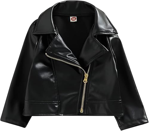 FEATURES: Turn-down collar jackets, zipper closure coat, pu leather cardigan, baby girl leather tops, black and brown blouse, trendy baby girl clothes, fashion clothing, casual and unique design, your little sweet heart will fall in love with this tops on it!