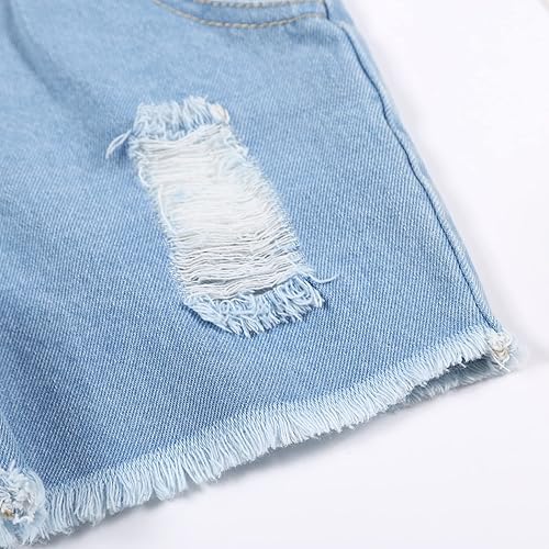 Toddler Kids Girls Denim Shortalls Adjustable Buckle Straps Ripped Overalls Shorts(Blue,2-3T)