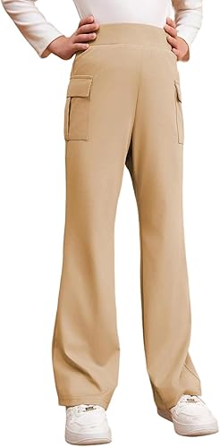 • FEATURES: The Girls' Fancy Flare Pants Are Designed With A Classic High Waist, Full Length And An Wide Leg Design With Practical Side Pockets, Which Is Fashionably S Imple And Easy To Matc H