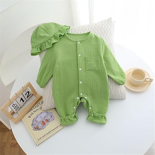 Newborn Infant Baby Girl Clothes Cotton Linen Rompers Solid Ruffle Jumpsuits with Hat Infant Baby Baby Girl Clothes(C,12-18 Months)