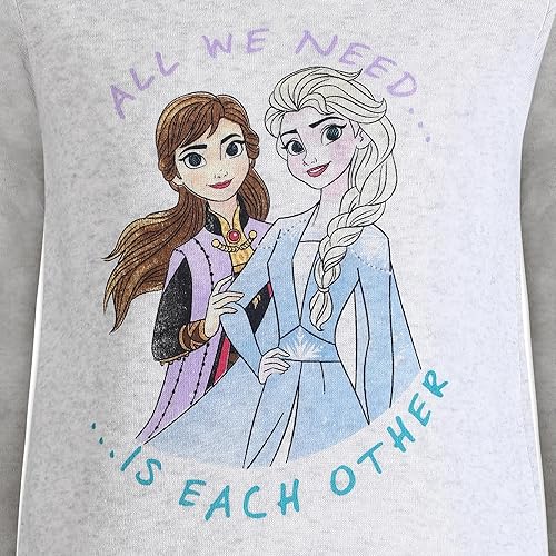• Contains One Comfy Grey Elsa and Anna All We Need Is Each Other Printed Hoodie and One Warm And Soft Light Blue All Over Print Snow Flake Legging Pants
