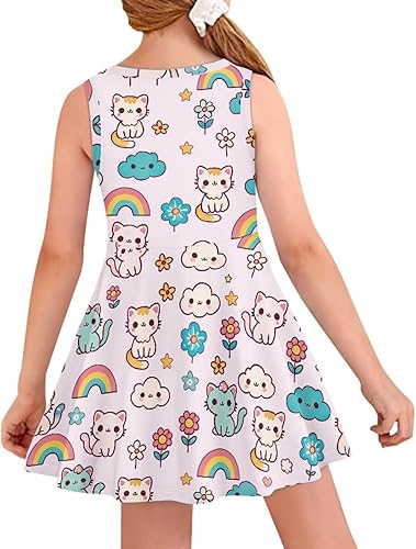 • ♥【FUNCTION & MATCH】-Stretch and Elastic Waist,Not too tight and Shows your figure line as well .Girls Sleeveless Dress matches well with sandals or sneakers etc, also can pair with Necklace ,Earrings, jackets, coats outside or t-shirts inside in cold days.