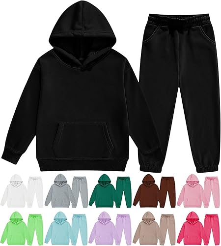 Kids Clothing:unisex kids Girls 2 piece tracksuit set solid color athletic sweatsuits sets boys hoodies outfits athletic hooded sweatshirt and jogger sweatpants brushed fleece sport clothing sets for kids to partys youth 2-13 years.Kids boys girls casual solid color sweatsuit is perfect for wearing at sports, school, travel, parties, team events, going out, etc., with any type of jeans, skirts, sweaters, simple and stylish.pants girls shorts clothes workout set workout sets