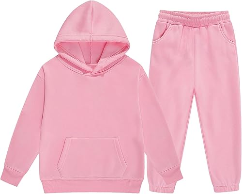 Kids Clothing:unisex kids Girls 2 piece tracksuit set solid color athletic sweatsuits sets boys hoodies outfits athletic hooded sweatshirt and jogger sweatpants brushed fleece sport clothing sets for kids to partys youth 2-13 years.Kids boys girls casual solid color sweatsuit is perfect for wearing at sports, school, travel, parties, team events, going out, etc., with any type of jeans, skirts, sweaters, simple and stylish.pants girls shorts clothes workout set workout sets