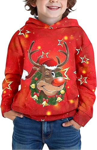 • FESTIVE HOLIDAY DESIGN: This boys' Christmas hoodie features cheerful holiday prints with seasonal patterns like reindeer and snowflakes.The highlight is all kinds of cool and novel 3D printing.The playful design adds festive spirit to children's winter wear, perfect for Christmas celebrations and family gatherings.