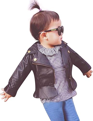 Girls Short Jacket Coat 1-4 Years Old,Fashion Infant Toddler Girls Kids Autumn Winter Leather Zipper Outerwear(Black,6-12 Months)