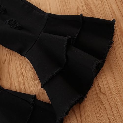 Girls and Toddlers' Ripped Flared Denim Pants Ruffle Wide Legs Jeans High Waisted Leggings Bell Bottoms Vintage Clothes(Black,5-6 Years)