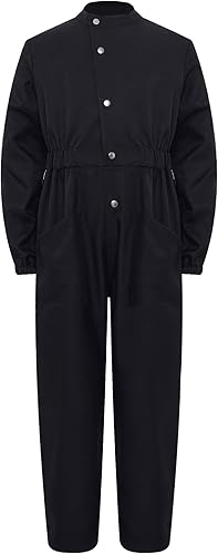 Kids Boys Girls Long Sleeve Mechanic Coveralls Flight Suit Jumpsuit Fancy Dress Up Casual Straight Leg Rompers Black 12 Years