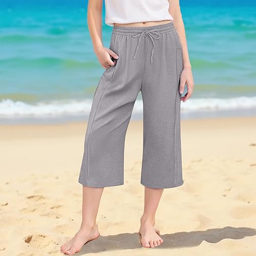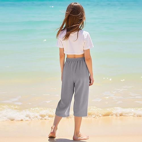 Palazzo Pants for Girls High Waisted Wide Leg Capri Pants Tween Girls Kids Fashion Sweatpants with Pockets Loose Fit(Gray,10-11 Years)