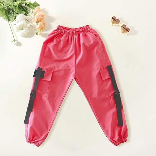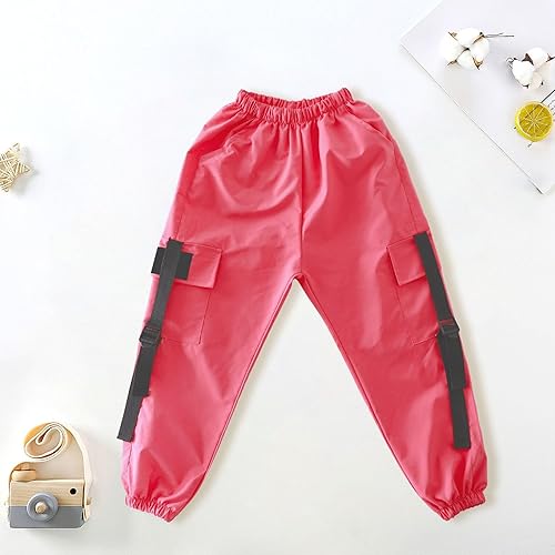 Pants Kids Girls' Pants Spring/Autumn Elastic High Waist Strap Work Dress Pants Sports Performance Street Dance(Pink,15-16 Years)