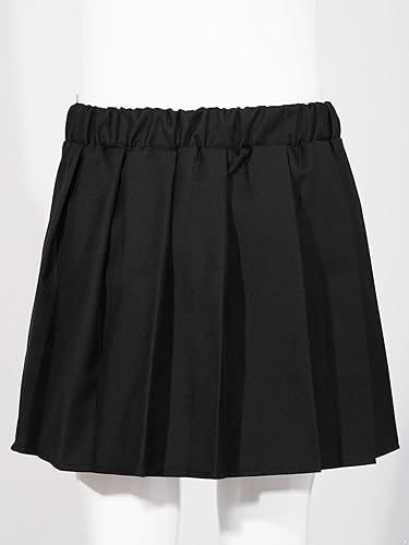 ACSUSS Girls Teens Pleated Pull-on Scooter Mini Skirt Short Elastic Waist School Uniform Skorts with Undershorts(Black,11-12 Years)