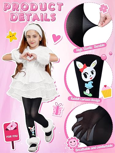 4 Pairs Girls Dance Tights Pattern Leggings Fleece Lined Pantyhose Microfiber Stockings for Girls(5-9 Years)
