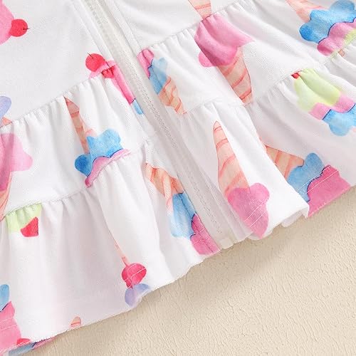Long Sleeves, Super Cute Ruffled Hooded Beach Dress Cover Ups, Fashion Floral Print Ice Cream and Animal Print Pink Flamingo , Zipper Up Closure, Toddler Baby Girl Little Kids Girls Summer Fashion Swimsuit Beach Dress Cover Ups Ruffle Bathing Suit Cover Up Cardigan Kimono Kids Swimwear