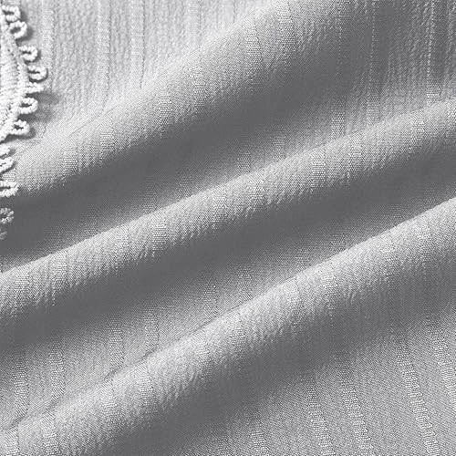 Cotton Linen Shirts for Girls Boho V Neck Blouses Puff Short Sleeve Shirts Lace Trim Elegant Shirt Teen Oversized Blouse(Grey,13-14 Years)