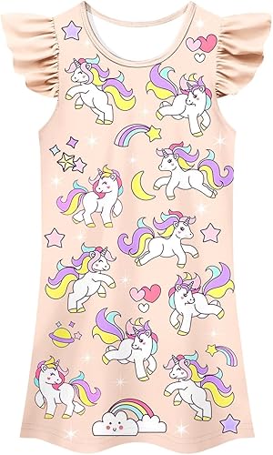 Kids Girls 2Pcs dress gown for girls, the cute print is sure to delight any little girl who loves cute pattern and fantasy. The vibrant colors and cute design will make your child feel like a princess, and the funny print will creat their imagination.