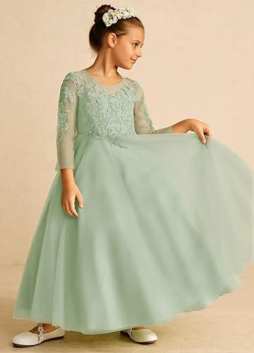 Princess Style Design: Flower Girl Dress features with crew neck, ankle length, lace appliques, back zipper closure, which would have a more tailored fit and exude elegant charm. Our dress will have your flower girls feeling like they are in a real fairy tale!