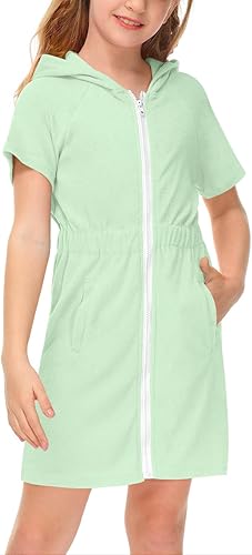 BesserBay Girl's Zip Up Terry Cover Up Hooded Bathrobe with Pockets 4-14 Years