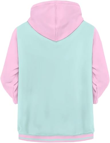 Girls Boys Cat Pattern Zip Up Hoodie Long Sleeves Sweatshirt with Pockets for Travel Sport(Blue&pink,Small)