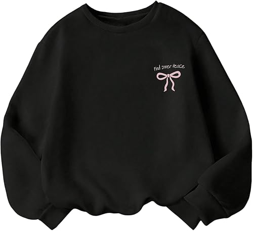 • Features: Letter graphic, bow graphic, long sleeve, round neck, drop shoulder, loose fit, sweatshirt for girls