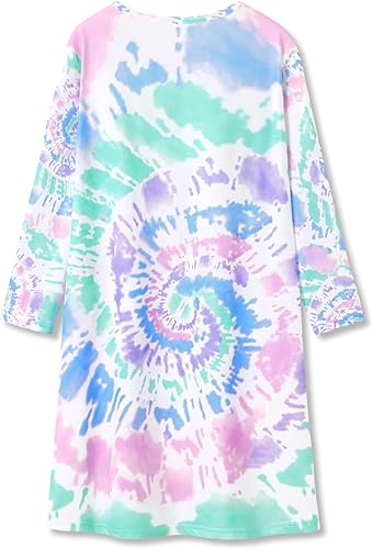 Feature: This girls nightgown feature stylish blue & coral tie-dye swirl pattern, it will make your girls stand out on Pajama Day or slumber party with this nightdress.These comfy pajama gown are the perfect gift for little or big kid girls on Christmas, Birthday, Thanksgiving and New Year gift.