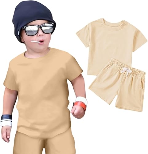 • Fashionable design: Featuring a solid-color short-sleeve T-shirt paired with matching elastic-waist shorts, this set is perfect for daily outings, playtime, or summer activities.