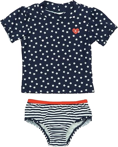 KIKO & MAX Girls' Swimsuit Set with Short Sleeve Rashguard Swim Shirt(Stars/Stripes,6-9 Months)