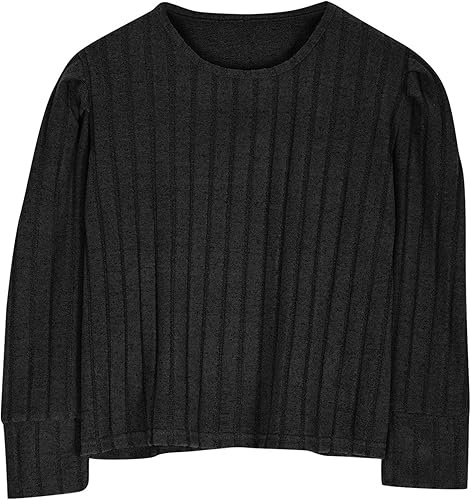 Girls Puff Long Sleeve Shirts Solid Holiday Party Tees Elegant Tunic Shirts Casual Dressy Crewneck Blouse Tops Fashion(Black,7-8 Years)