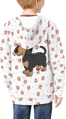 Biyejit Kids Novelty 3D Graphic Printed Hooded Sweatshirt Boys Girls Zip Up Hoodies Age 6-16 Years(Dachshund Dog Paws,8-10 Years)