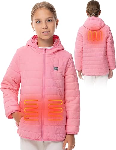 HENNCHEE Kids Heated Jacket for Boys Girls Lightweight Winter Heated Jacket with Battery Pack Heated Coat