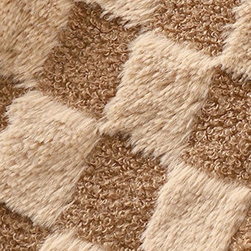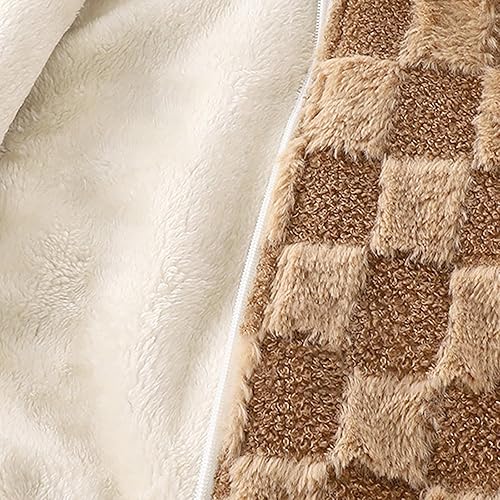 Kids Plaid Sherpa Fleece Full-Zip Sweatshirt Girls Boys Stand Collar Fuzzy Cozy Jacket Soft Warm Fall Winter Coat(Beige,5-6 Years)