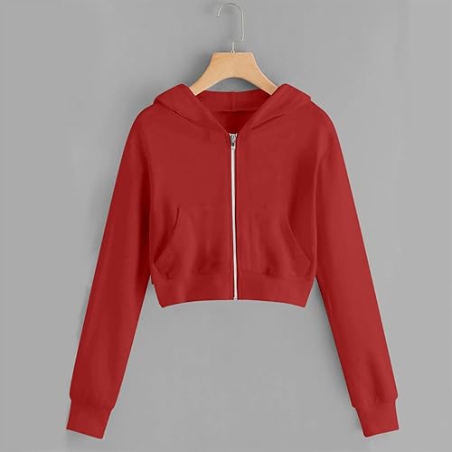 Girls Sweatshirt - Full-Zip Cropped Hoodies, Fleece Cute y2k Aesthetic Clothes, Fall Casual Workout Jackets 5-14 Years(A09-red,5-6 Years)