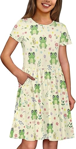 Cute Summer Dresses for Teen Girls Dress for Girls 2-14 Toddler Girl Dress(Cute Frog Floral,2-3T)