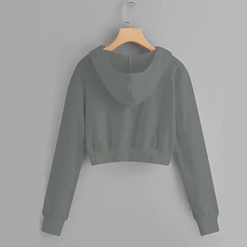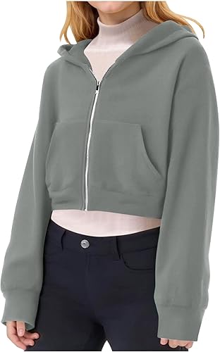 Cute Hoodies for Teen Girls Trendy Junior Preppy Cropped Sweatshirt Zipper Up Crop Winter Jackets Kids Clothes Tops(Gray #4,9 Years)