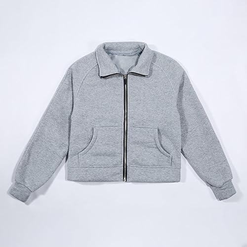 Girls Hoodies & Sweatshirts Girls Zip Up Sweatshirt Fashion Stand Collar Fleece Lined Jacket With Pockets for(Grey,13-14 Years)