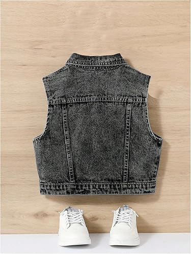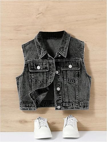 Verdusa Girl's Jean Jacket Denim Vest Button Down Fashion Sleeveless Cute Crop Tops(Black,12 Years)
