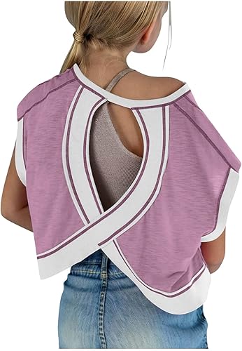 Girls Summer Athletic Tops Kids Fashion Back Cross Hollow Out Short Sleeve Tween Soft Cotton Tennis Running T-Shirts