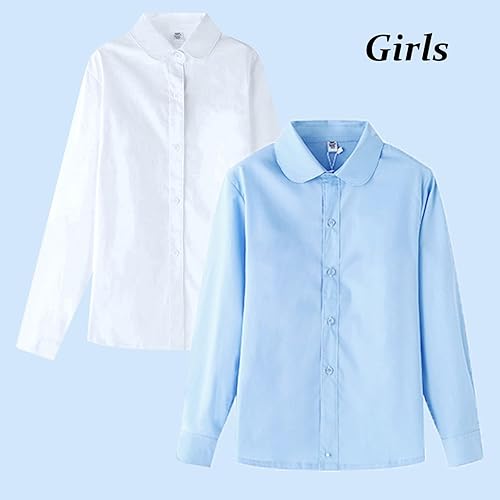 Teen Girls Cotton Dress Shirt Long Sleeve Button Down Shirt Girls Classic Fit Collared Tops Big Sister Shirts for Kids(White,4-5T)