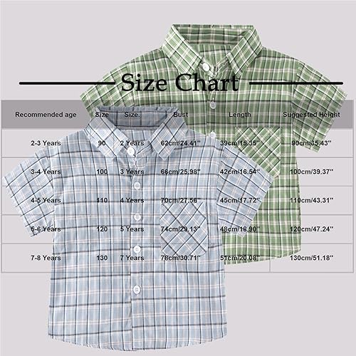 2-8T Baby Boys and Girls Shirts Fashion Plaid Print Short Sleeves Lapel Blouse Tops Kids Summer Hawaiian Shirt(Blue,3T)