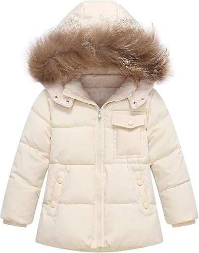Kids Girls Winter Fleece Lined Puffer Jackets Fur Collar Hooded Parka Snow Coats