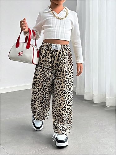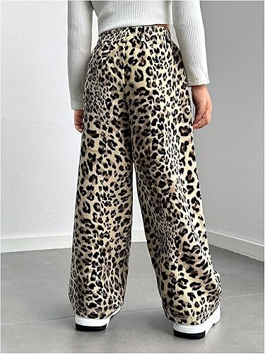 Features: Elastic high waist, wide leg, leopard print, letter patched, casual sweatpants for girls