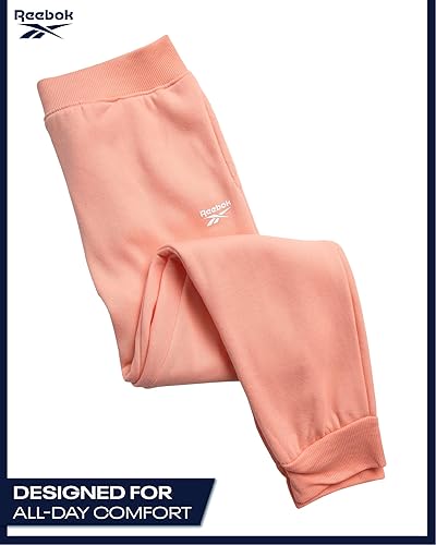 Reebok Girls Sweatpants - Performance Poly Fleece Active Joggers Sweatpants for Girls - Soft Stretch Kids Athletic Pants(Peach,7)