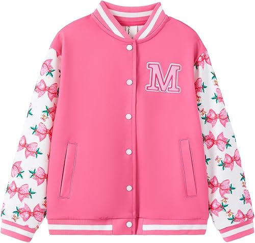 PATPAT Girls Varsity Baseball Jacket Size 3-10 Years Bomber Coat Casual Lightweight Button up Color Block with Pockets