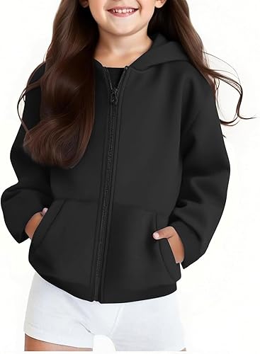 Zip Up Hoodies for Teen Boys Girls Fleece Casual Cute Hooded Sweatshirt Fall Winter Fashion Tops with Pockets(A2-black,4-5T)