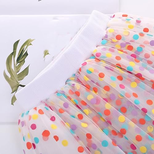 Girls' Polka Dot Tutu Glitter Ballet Tulle Dance Skirt Kids Skirt Casual Mini Flare Plain Stretch Waist Skater Skirts(White,12-18 Months)