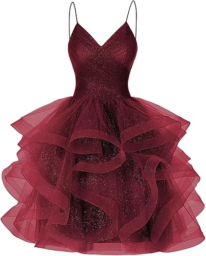 • Features: Short Spaghetti Straps Tiered Homecoming Dresses, Puffy Sparkly Tulle Cocktail Gowns, Elegant A-line Prom Dresses, Sexy V-neck Evening Gowns.