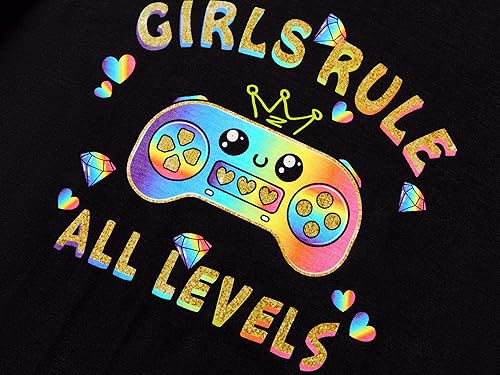Topgal Summer Pajamas for Little/Big Girls – Swirl Tie Dye Butterfly Design Kids' Short Sleeves & Shorts PJS Size 6-18(Black Game (Short Sleeve & Shorts),6)