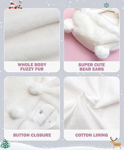SOLOCOTE Toddler Girls Faux Fur Cloak Jacket Little Kids Fuzzy Fleece Lightweight Hooded Cute Fall Winter Coat(White-b,12-18 Months)