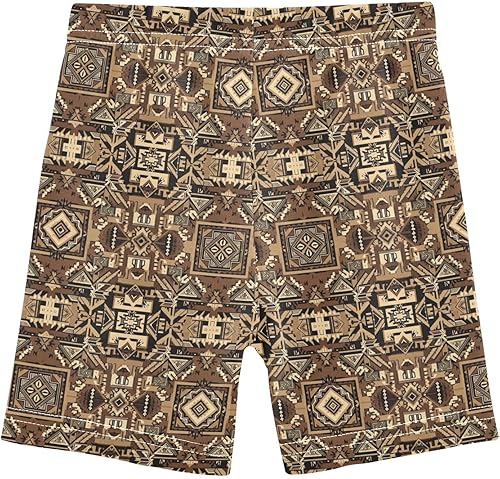 Abstract Brown Tile Girls Bike Shorts Toddler Soft Cotton Under Dress Cartwheel Shorts(Multi-abstract Brown Tile,8 Years)