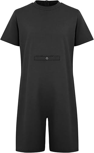 Adaptive Clothing for Kids Short Sleeve Jumpsuit Zip Back Tube Access Overall Anti-Strip Romper with Special Need Black 16 Years