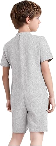 Adaptive Clothing for Kids Short Sleeve Jumpsuit Zip Back Tube Access Overall Anti-Strip Romper with Special Need Grey 16 Years